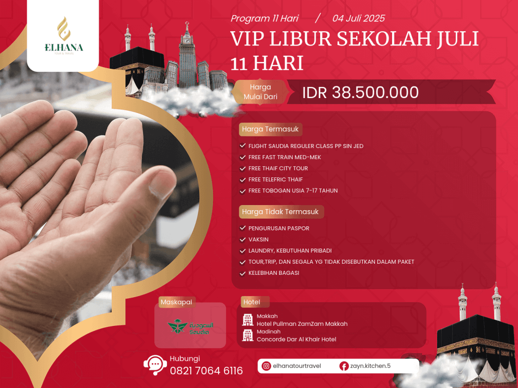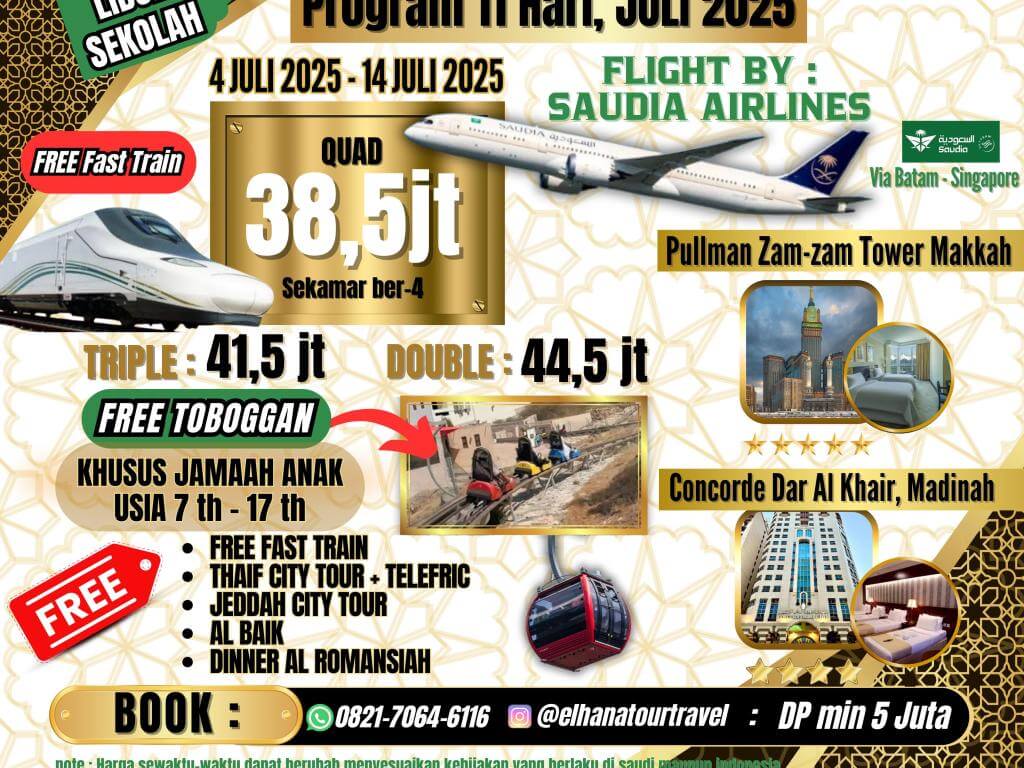 5. Pelunasan pembayaran maksimal 40 Hari sebelum keberangkatan