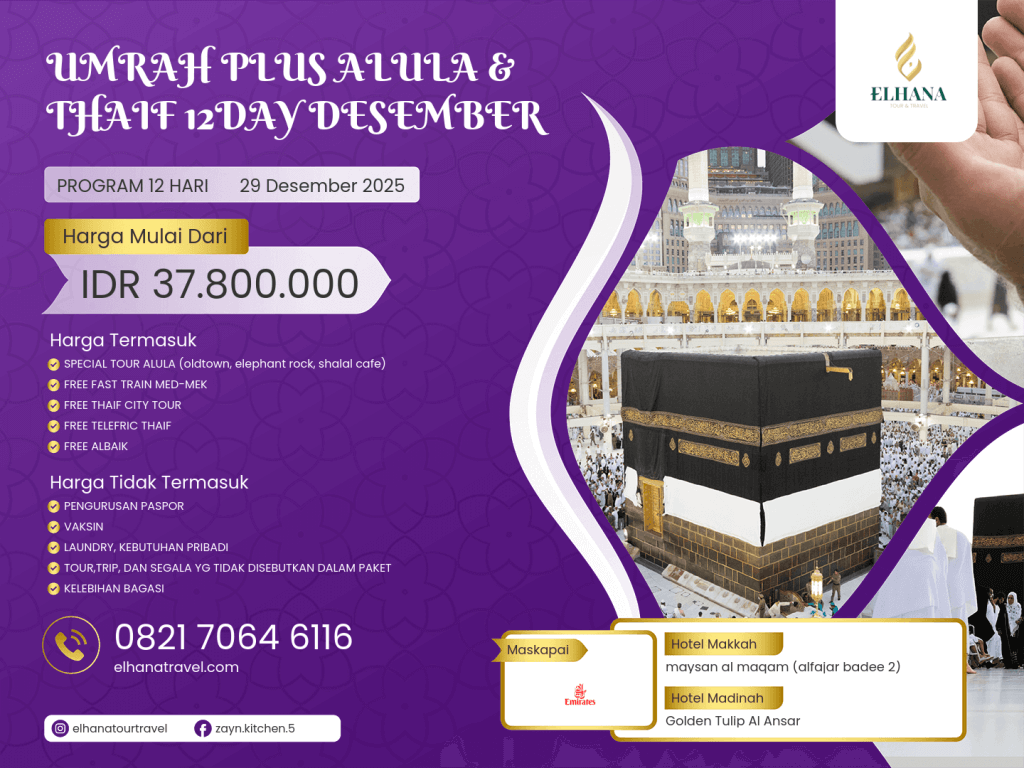 UMRAH PLUS ALULA & THAIF 12DAY DESEMBER