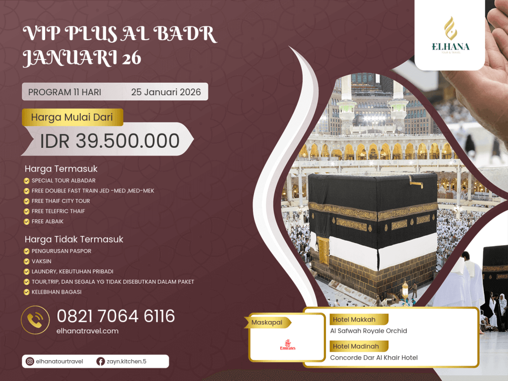 Elhana Tour and Travel berhak untuk melakukan upgrade atau perubahan hotel dan maskapai demi kenyamanan jamaah, dengan tetap mempertahankan kualitas dan standar pelayanan yang setara atau lebih baik.