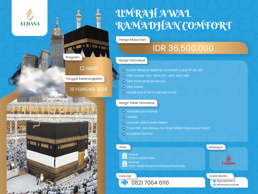 Elhana Tour and Travel berhak untuk melakukan upgrade atau perubahan hotel dan maskapai demi kenyamanan jamaah, dengan tetap mempertahankan kualitas dan standar pelayanan yang setara atau lebih baik.