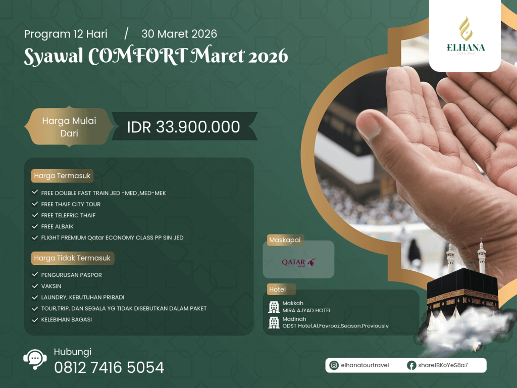 Elhana Tour and Travel berhak untuk melakukan upgrade atau perubahan hotel dan maskapai demi kenyamanan jamaah, dengan tetap mempertahankan kualitas dan standar pelayanan yang setara atau lebih baik.